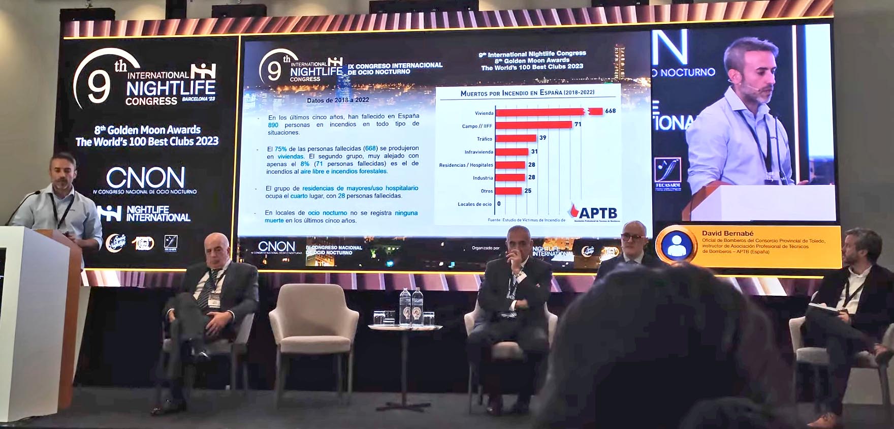 David Bernabé, destacó que del 2018 al 2022, y con las estadísticas en la mano, se puede afirmar que el ocio nocturno en España es seguro, ya que no se registró ninguna muerte por incendio. Esto demuestra que el cumplimiento de la normativa ayuda a prevenir este tipo de desastres, siempre y cuando el local esté al día y cumpla con todos los requisitos legales (algo que, tristemente, no sucedió en los hechos acontecidos recientemente en Murcia).
