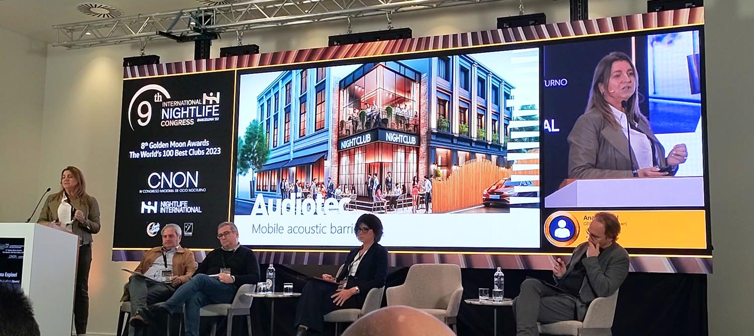 La empresa Audiotec, especialista en aislamiento acústico y pionera en I+D, ha sido premiada por su “Silent Wall”, que consigue la atenuación del ruido en zonas abiertas como terrazas y la absorción de partículas nocivas de la atmósfera –una tecnología reconocida por la Unión Europea– obtuvo el galardón al Mejor Proyecto Innovador en el Ocio Nocturno de 2023.