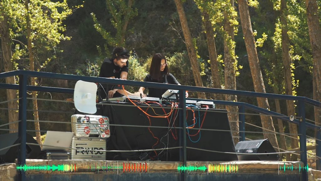 Beat Link Trigger se cuela también dentro de las redes Pro DJ Link ejecutándose desde un ordenador conectado a esas redes, y extrae toda la información para los fines que he comentado, pero además de eso tiene una característica que ha llamado la atención de algunos DJ que realizan streamings y que han empezado a incorporarla: también genera una vistosa forma de onda igual a la que puedes ver en la pantalla del CDJ o XDJ, esta forma de onda puede o bien capturarse para usarse como overlay decorativo, o bien para sacarla a pantalla completa en monitores que formen parte de la escenografía de tu sesión. El fin es meramente decorativo, pero algunos DJs ya lo utilizan y el resultado es ciertamente vistoso, en la siguiente captura podéis observar a Fran DC con Esther Bronchal en un directo para Pioneer DJ empleando esta técnica para sacar en vivo la forma de onda de los 4 CDJ-2000NXS2 que estaban empleando: